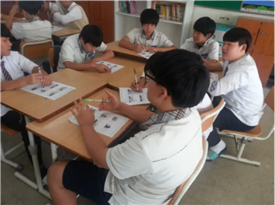 학생평가 및 대처방안 : 수업에 대부분의 아이들은 잘 참여하였고, 자율학기제 과정이 시작해서 만들어진 과정이었다. 그래서 자율학기제에 맞춰 ‘지구촌 000’이라는 수업으로 개설되었고, 대부부의 학생들이 가위바위보에 져서 이 수업을 듣게 되었다고 했다. 여학생들은 너무 조용했고, 남학생들은 너무 부산해서 중간 진행의 분위기를 잘 잡아야 할 것 같다.