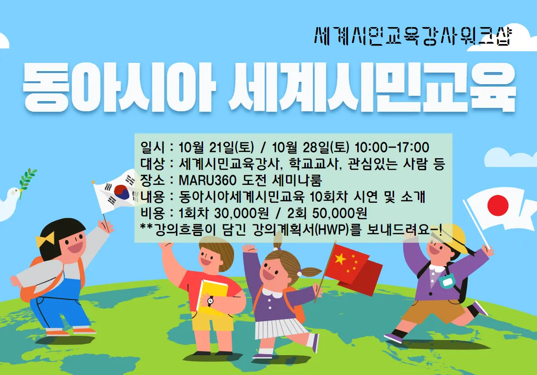 10/21, 10/28(토) 10:00-17:00 동아시아세계시민 강의시연강사워크숍